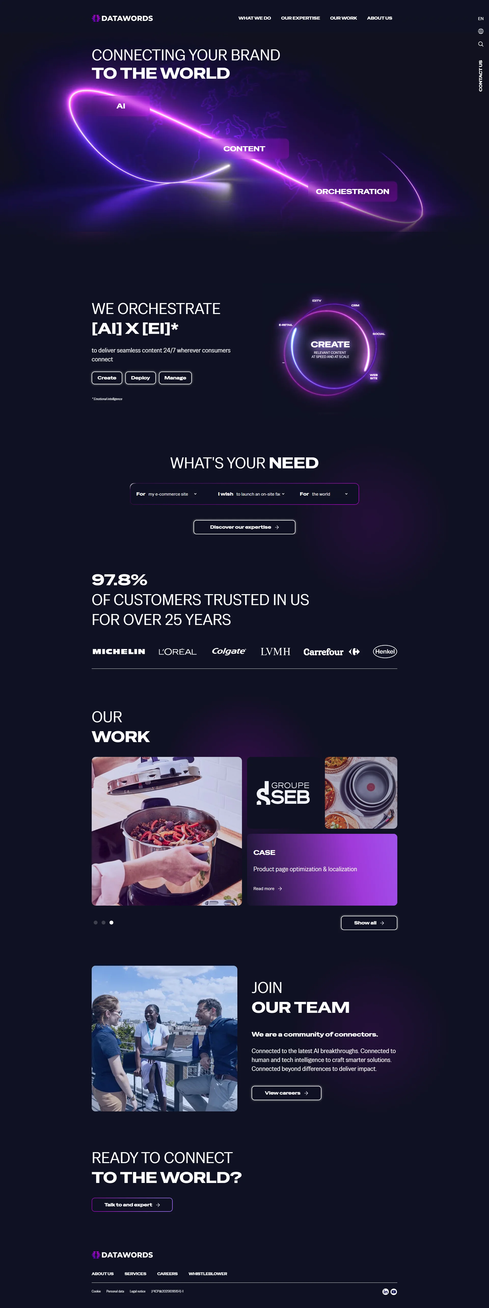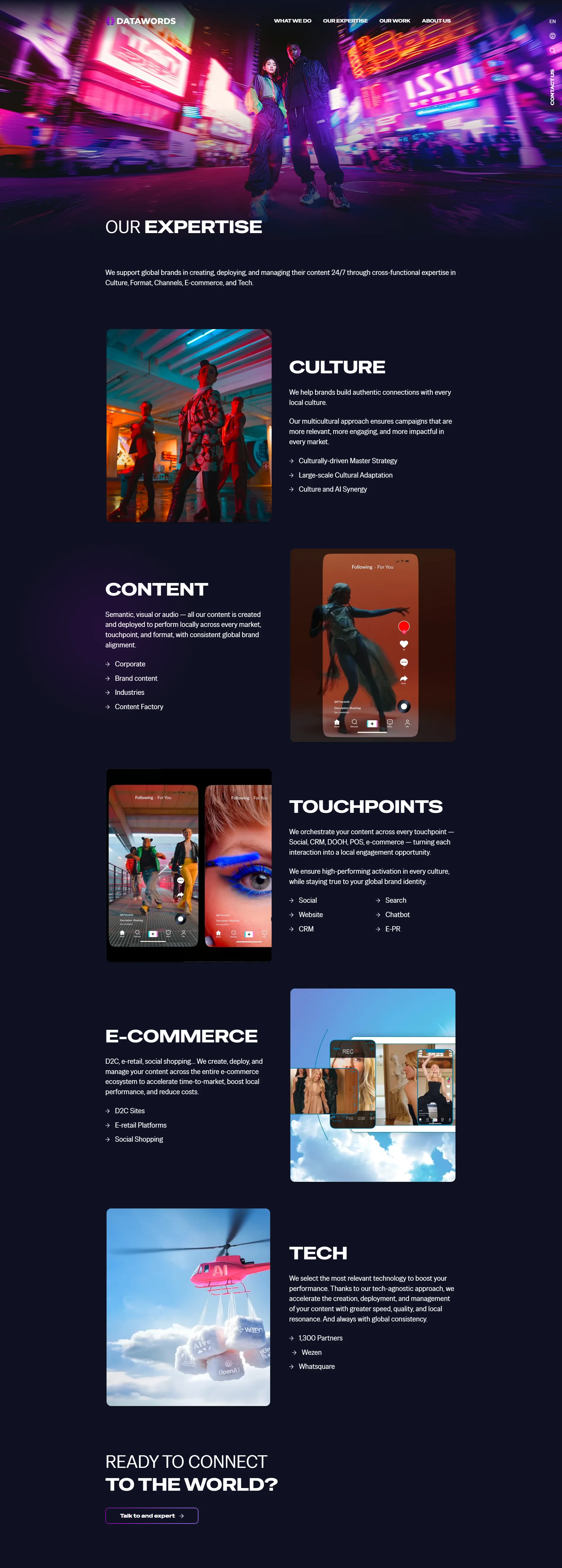 Datawords是一家专注于国际化数字营销和跨文化内容本地化的咨询公司,他们帮助全球品牌在不同国家和文化中进行有效的数字传播和电子商务运营。